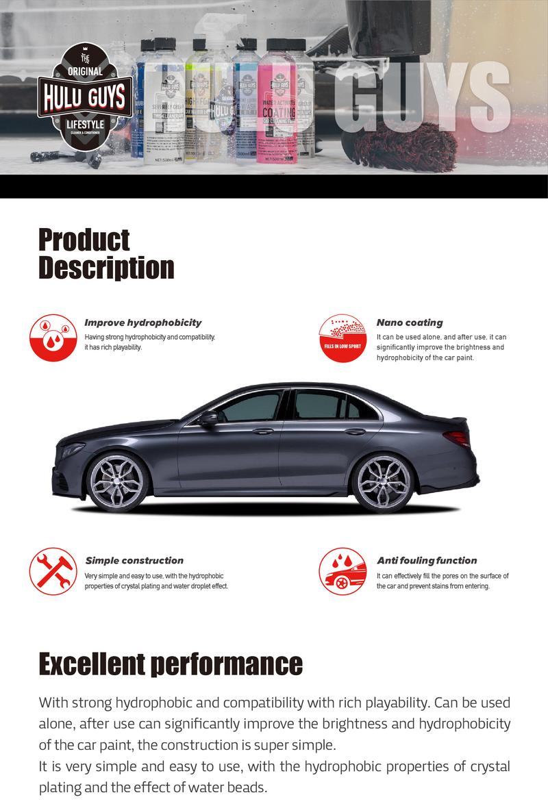 Hulu Guys Hyperconcentration Water Activated Coating Car Wash Liquid Car Washing Polishing Coating Crystallization Waxing Brightening Polishing Smooth - Color: 500ml