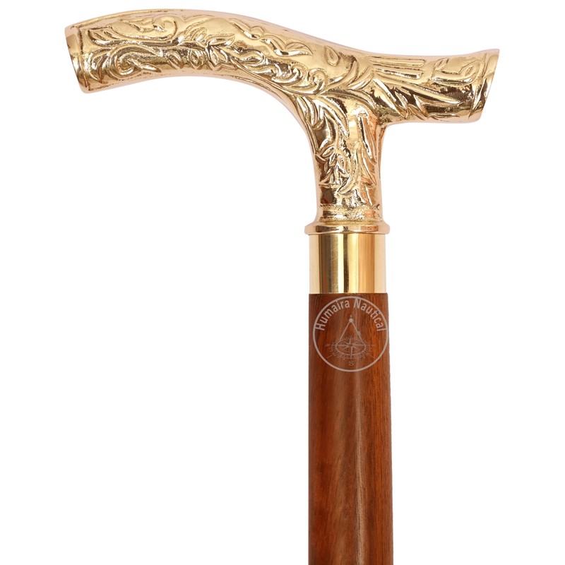 Vintage Brass Walking Stick – Handmade Wooden Cane with Solid Brass Handle – Antique Style Collectible Walking Cane for Men, Women & Seniors – Unique Gift Idea