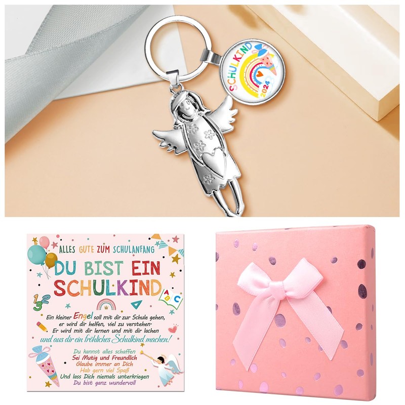 - Einschulung Geschenk für Mädchen: Schutzengel Schlüsselanhänger mit Grußkarte und rosa Geschenkbox. Machen Sie diesem besonderen Mädchen eine Freude und geben Sie ihm einen Schutzengel, der es auf seinem Schulweg begleitet.