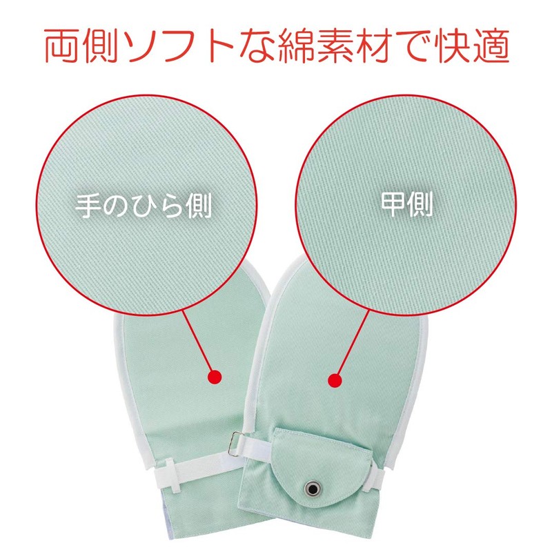 | Material Type: | 表地/綿100%(綾織り)、裏地/ポリエステル65%・綿35%(平織り)、縁取りテープ・ベルト/ポリエステル100%、面ファスナー/ナイロン100%、ホック/医療用ステンレス |