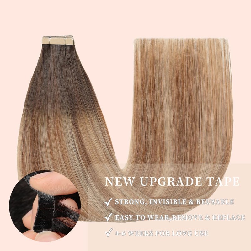 - 【Tape in Hair Extensions Human Hair Material】Remy Tape in Hair Extensions blend seamlessly with your natural hair for an undetectable look. Add length, volume, or highlights with ease. Style them like your own hair—curl, straighten, or volumize effortlessly for a glamorous finish