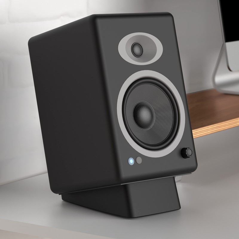 - Enjoy high-fidelity audio with a speaker angle wedge: The HumanCentric medium speaker stands drastically reduce speaker vibration on your desk or table while angling the speakers towards your ears. Compatible with AudioEngine speakers A5+, HD4, HD6, P4, HDP6, and other comparably sized desktop speakers.