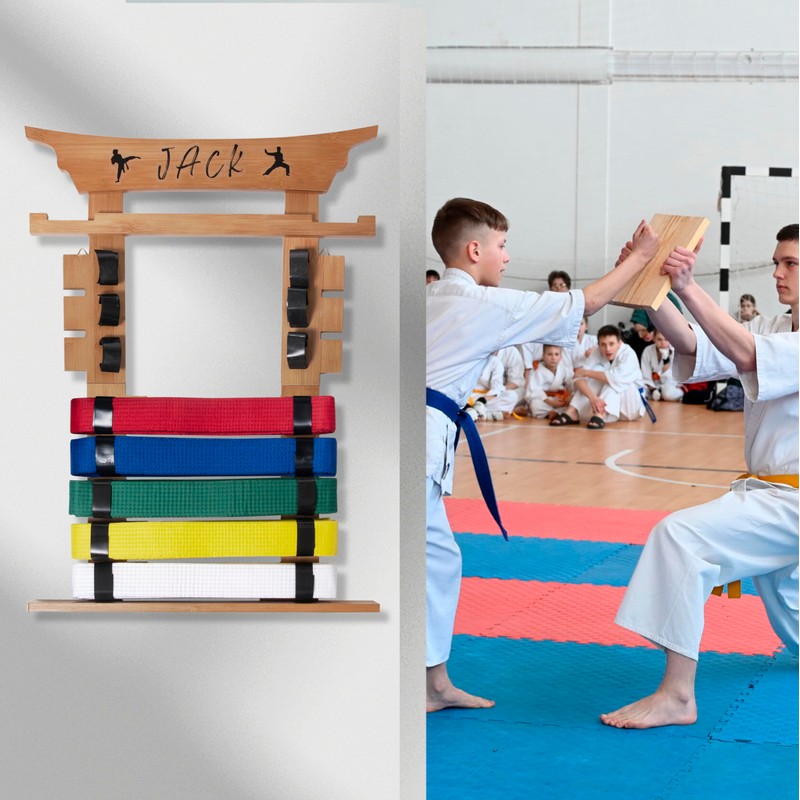 - Spacious 8-Belt Capacity:This display rack is designed to hold up to 8 karate or taekwondo belts, making it perfect for martial artists of all ages. With ample space, you can proudly showcase all your hard-earned belts in an organized manner, allowing you to reflect on your progress and dedication.