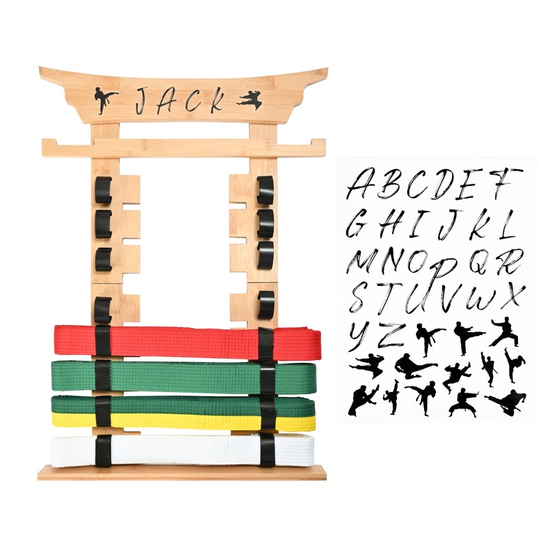 - Personalized Stickers Included: To make your display unique, we include an assortment of stickers that you can use to customize the rack. Whether you want to label your belts or add personal touches, these stickers allow you to personalize your achievement display.