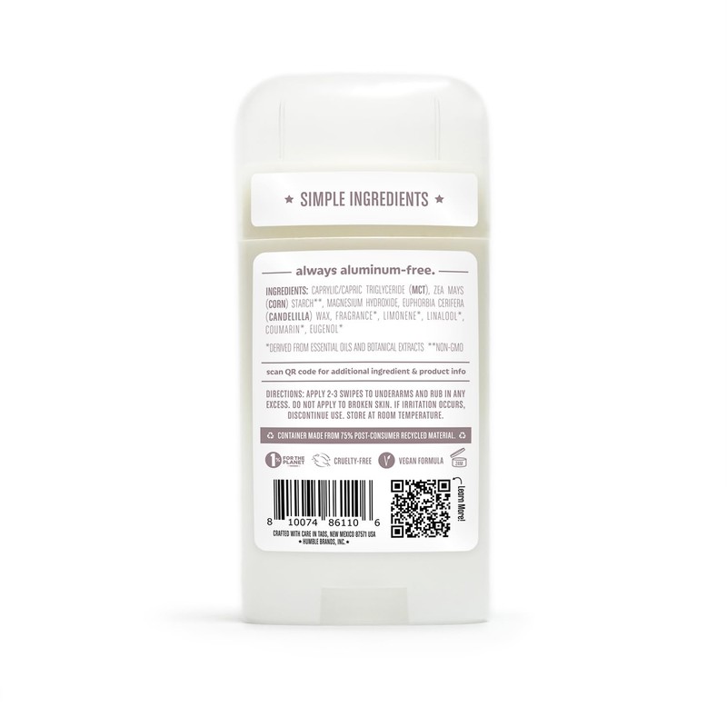 - BAKING SODA-FREE DEODORANT: Humble Brands Aluminum-free Deodorant is made with simple ingredients non-GMO corn starch, magnesium hydroxide, Wild Candelilla Wax, and MCT oil to be tough on odor while keeping you smelling fresh.