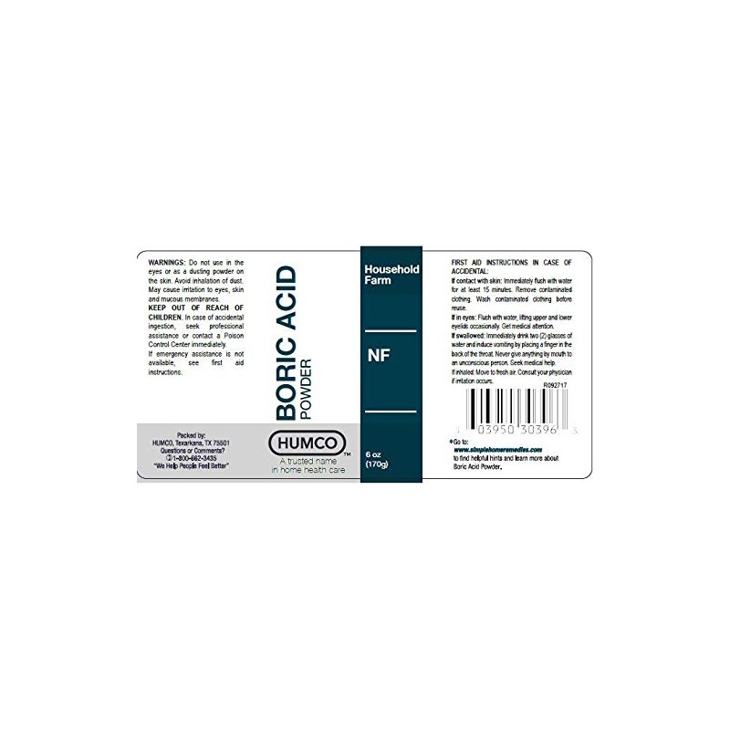 Humco Boric Acid Powder is a chemical used in many pharmacies to compound special preparations according to physician's orders. Boric acid is not only used pharmaceutically, but can also be used in several home remedies.