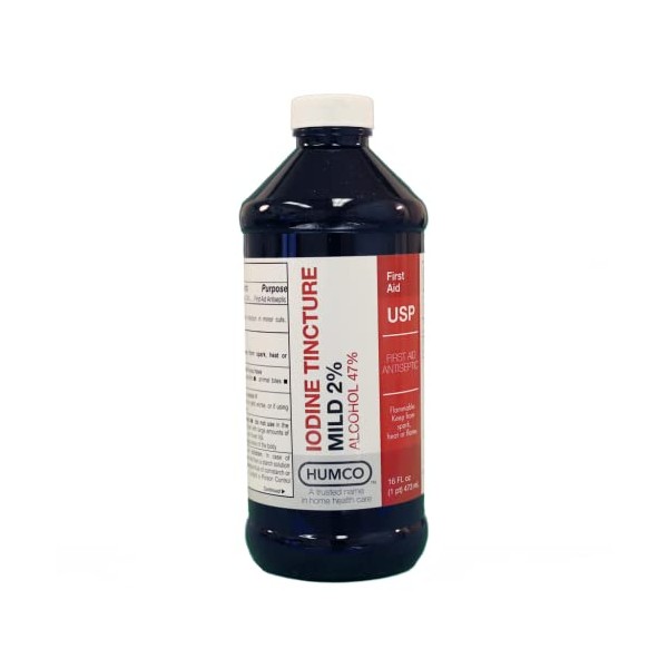 - Mild Iodine Tincture USP - 16 Fl. Oz by Humco. Mild 2%, Alcohol 47% (First Aid Antiseptic) USP. hUMCO- A trusted name in home health care. Made in the USA.