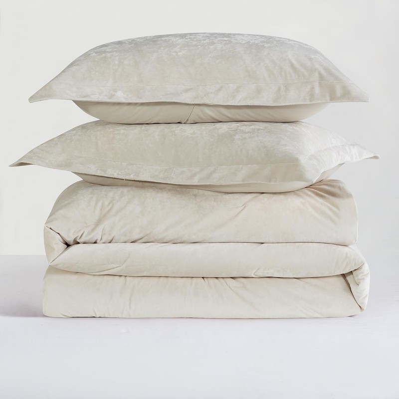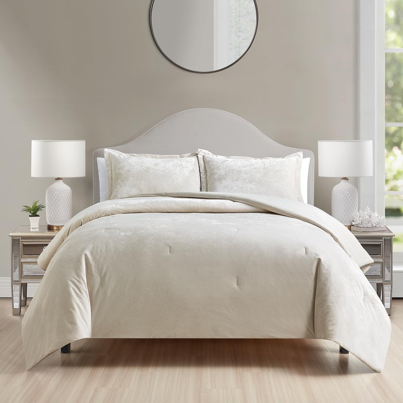 - 【Soft & Lightweight】Our distressed velvet comforter set is made of one side with luxuriously velvet and the reverse side with soft brushed microfiber. The comforter has entire piece of 240 GSM down-alternative fill preventing any shifting or clumping while ensuring it’s ultra-soft and lightweight. Let your family enjoy a luxuriously soft feeling and a warm night's sleep all year-round.