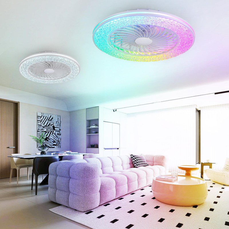 - Colorful Ambiance with RGB Lighting: Kick your home decor up a notch with our 24-inch ceiling fan that now boasts RGB lighting. Gone are the days of lighting—now you can set the mood with a vibrant spectrum of colors. Whether it's a cozy evening in or a lively party, our fan light lets you match the lighting to the moment, making every day feel like a celebration