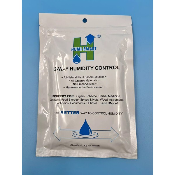 Enhance the quality of your cigar smoking experience with the Humi-smart 2-Way Humidity Control system. This product comes in a 4 pack with 30 grams of humidity control per pack. It maintains the perfect level of humidity (62%) for your cigars, ensuring their freshness and flavor.