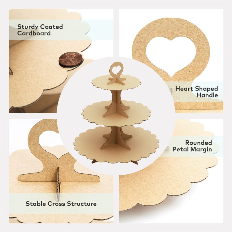 - Este mini soporte para cupcakes está hecho de cartón corrugado de alta calidad; resistencia garantizada no solo por material de alta calidad, sino también una estructura de ingeniería bien probada de corrugación. Fácil de montar y desmontar; el acabado de material suave hace que estos soportes para cupcakes para fiestas sean fáciles de limpiar con un paño suave