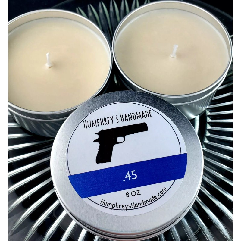 Humphrey's Handmade Masculine .45 Barbershop Scented Candle Soy Wax 8oz USA Oakmoss Earthy Patchouli