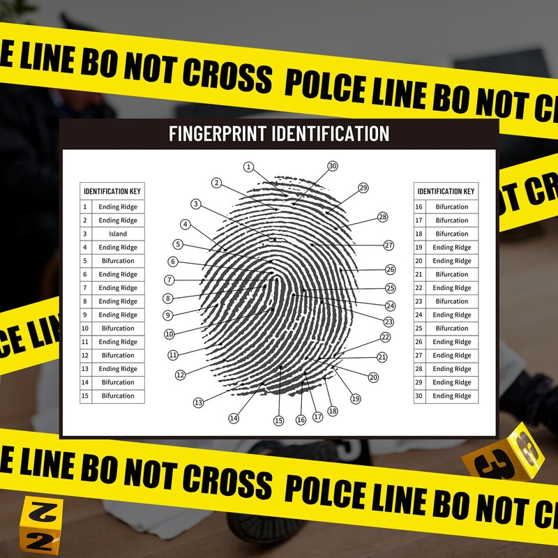 Humyoun Crime Scene Fingerprint Chart Poster Fingerprinting Poster Crime Scene Decorations Horizontal Board Canvas Unframed 33.46'by 24.4' Print Gifts for Murders Mystery Party Detective Spy