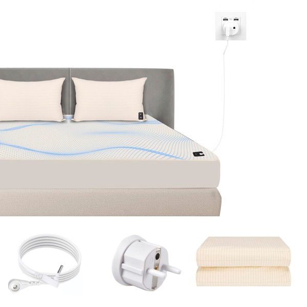HUNAIGEE 150 x 200cm Earth Foil Ground Sheet with EU Ground Cable, Conductive, Organic Cotton, Beige