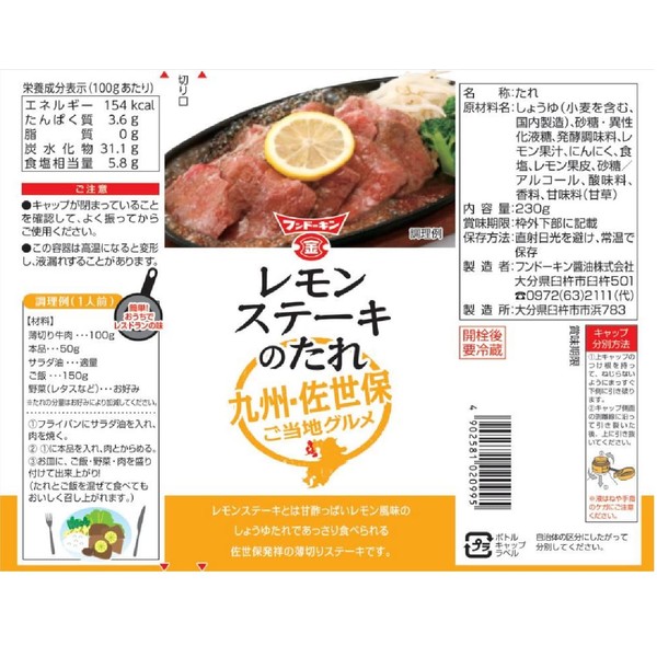 Hundokin Lemon Steak Sauce, 8.1 oz (230 g)