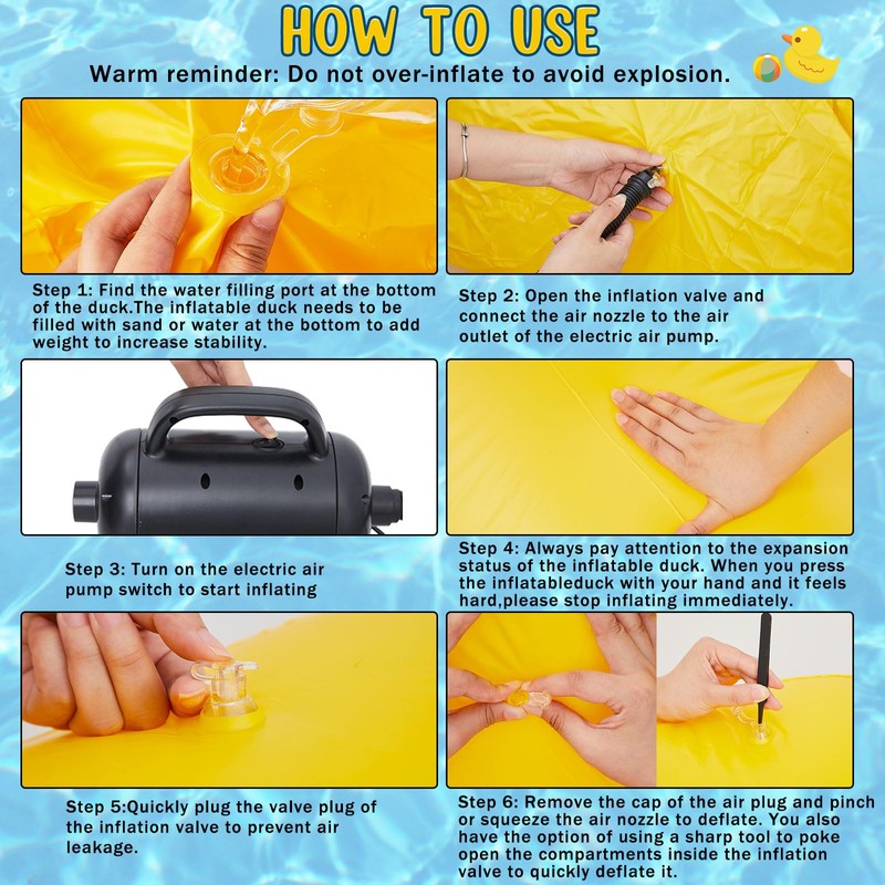 - Quick Inflation Valve: each duck pool float is easy to operate, thanks to its quick inflation valve; Inflate conveniently and experience easy mobility to carry it to parks, backyards, and beaches; Deflate it anytime for easy storage, saving both time and space