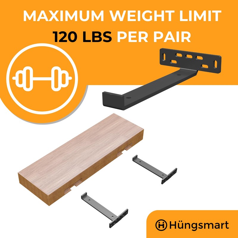 - FIT-LIKE-A-PRO HARDWARE (INCLUDES DRILL JIG)… Hüngsmart goes one step further to ensure a professional fit by including a drilling jig to line up the floating shelf brackets like a master. Set also includes 16x3” premium screws (carry up to 120 lbs for a pair), 8 drywall anchors, & 16 brick/concrete anchors