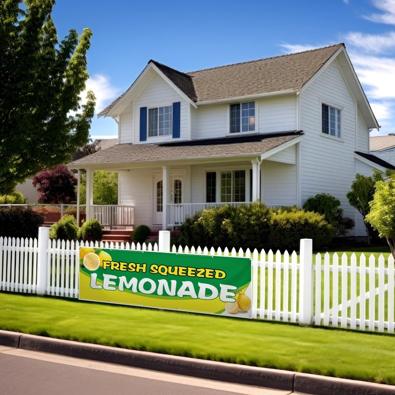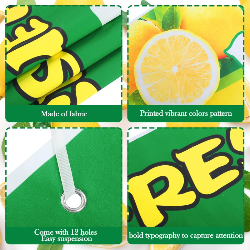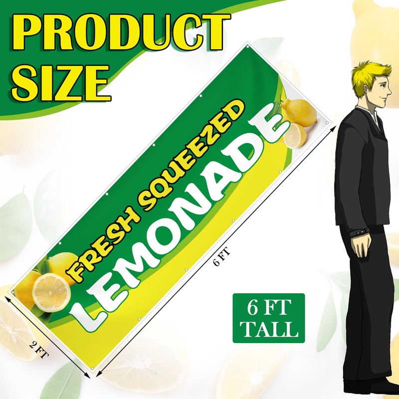- Oversized Dimensions: the lemonade banner measures about 2 x 6 ft, ensures maximum visibility, allowing passersby to easily spot your branding from a distance