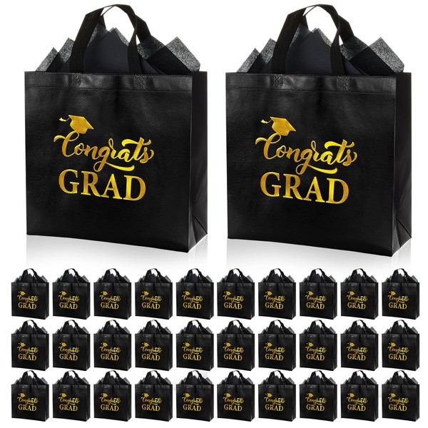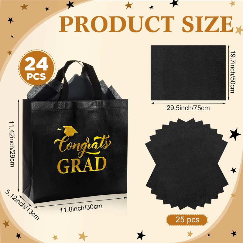 - Graduation Package Includes: you will receive 24 pcs Congrads Grad gift bags and 25 sheets of tissue paper, sufficient quantity that can satisfy your graduation party and daily use and gift giving needs; Enough to decorate your graduation gifts in this special day, bring funny and joy to your friends, classmates, students, daughter, son, sister, and someone who graduate