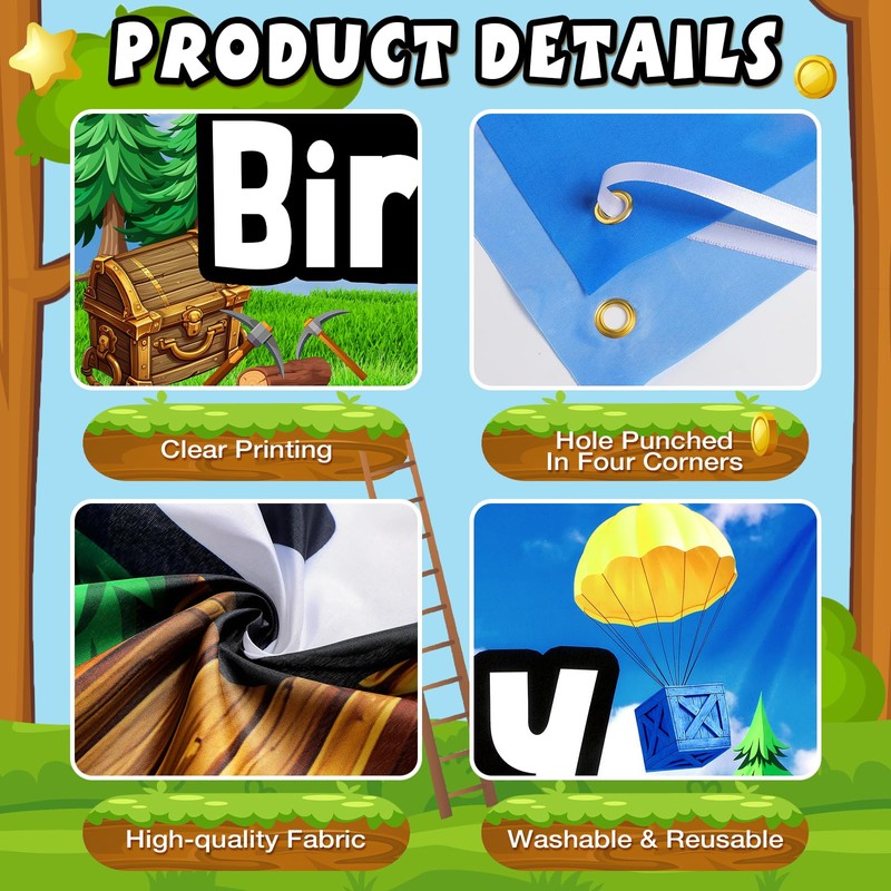 - Happy Birthday Themed Design: using classic game elements, balloon games, containers, treasure box, and other designs, our game theme background cloth is designed with the most advanced digital technology, high resolution, and; The details are exquisite and interesting, meanwhile, matching rich layers of colors, creates a strong visual effect, attracts people's interest and attention, and enhances the overall atmosphere of the game's birthday party