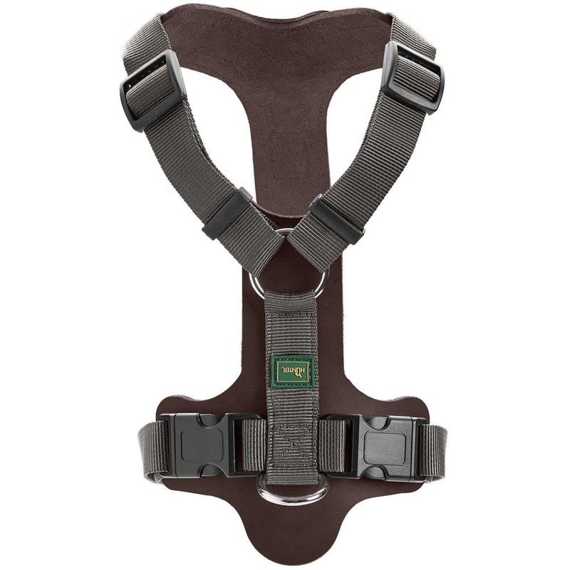 HUNTER AALBORG MIXED Dog Harness Dark Brown / Grey Cowhide Leather / Nylon Adjustable to 5 Positions Lightweight with Plastic Buckles Made in Germany Size: M