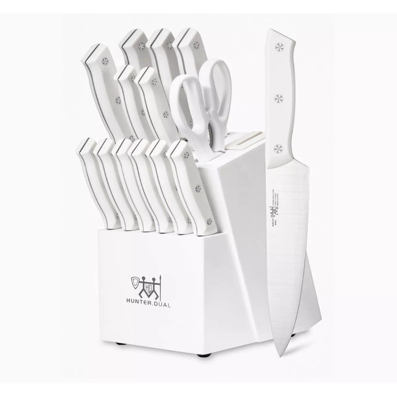 HUNTER.DUAL Kitchen Knife set, 15 Pcs w/ Block Self Sharpening, Anti-slip Handle