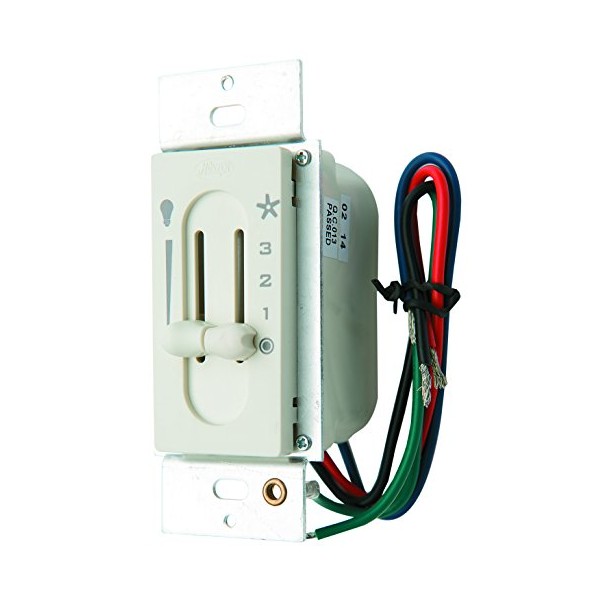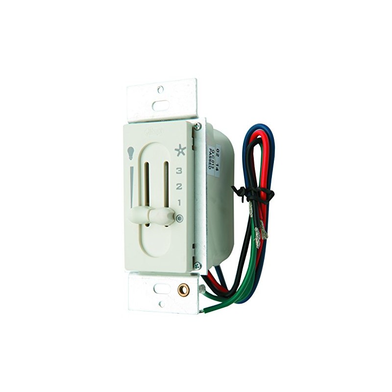 This dual slide control from Hunter provides three fan speeds and full-range light dimming in one easy-to-use unit. It also conveniently installs in a standard three-wire single-box wall switch. The preset feature lets you control fan/light operation at your desired setting. Rated for fans at 1.6 Amps and fan lighting at 300 watts, this indispensable unit lets you personalize your surroundings so they're comfortable and inviting. Rocker switch plate is not included.