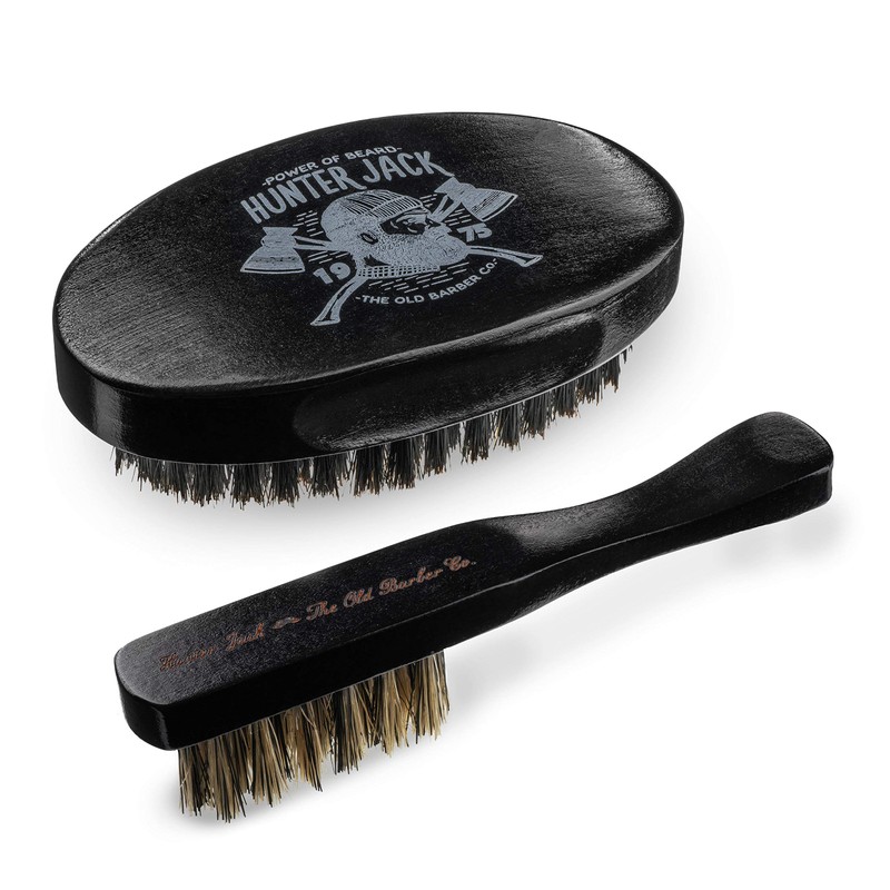 Hunter Jack Hunter Jack Beard Brush for Men - Natural Boar Bristle Hair Brush Kit - Small Soft Mustache Brush - Premium Grooming Kit - 2pc