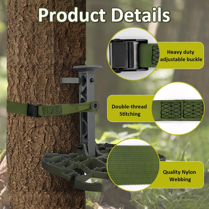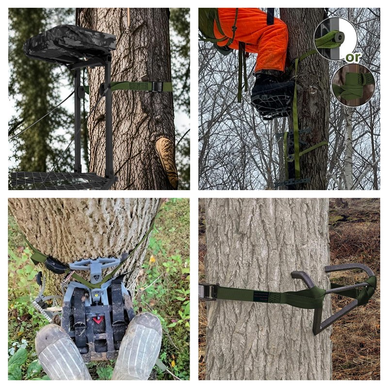 - QUALITY MATERIAL: The treesand climbing stick straps are made of high-quality nylon webbing, double-stitched, combined with heavy-duty stainless steel adjustment buckles, which make them more durable and have a higher safety factor, helping you achieve better performance in hunting.