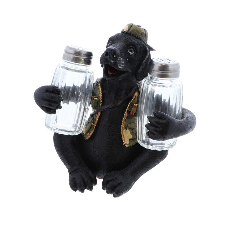 • These adorable animals are dressed in camo and are safeguarding 2 glass salt and pepper shakers.