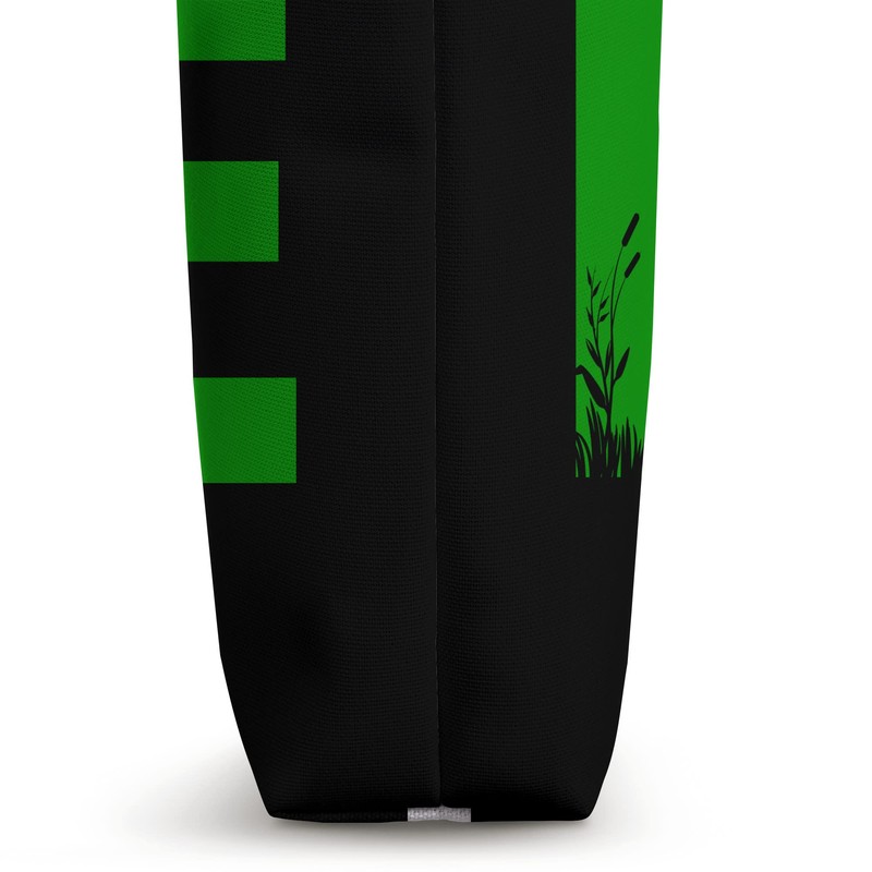- 16” x 16” bag with two 14” long and 1” wide black cotton webbing strap handles.