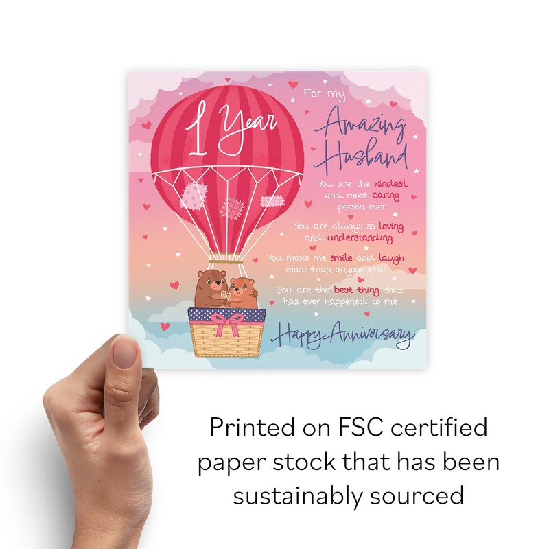 - Hunts England ⭐️ - Large Husband 1st Anniversary Poem Card - Love Is In The Air - Beautiful Love Verse - Cute Bears - 1st Anniversary Card For Husband - Romantic 1 Year Anniversary Card - 210 x 210 mm