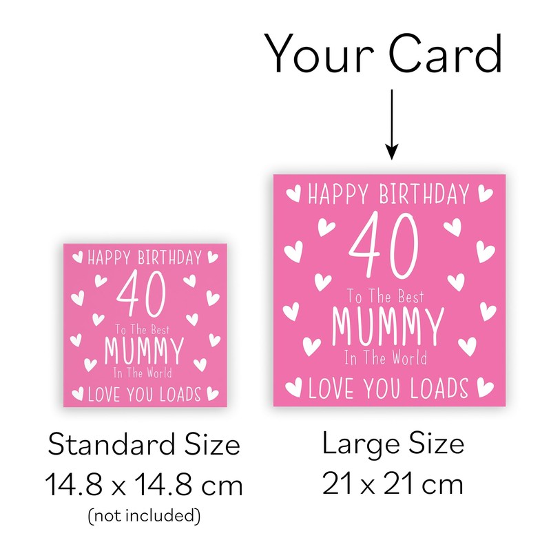 • Hunts England ⭐️ - Large Mummy 40th Birthday Card - Large Size - Happy Birthday - 40 - To The Best Mummy In The World - Love You Loads - Iconic Collection - Large - 210 x 210 mm - Age 40