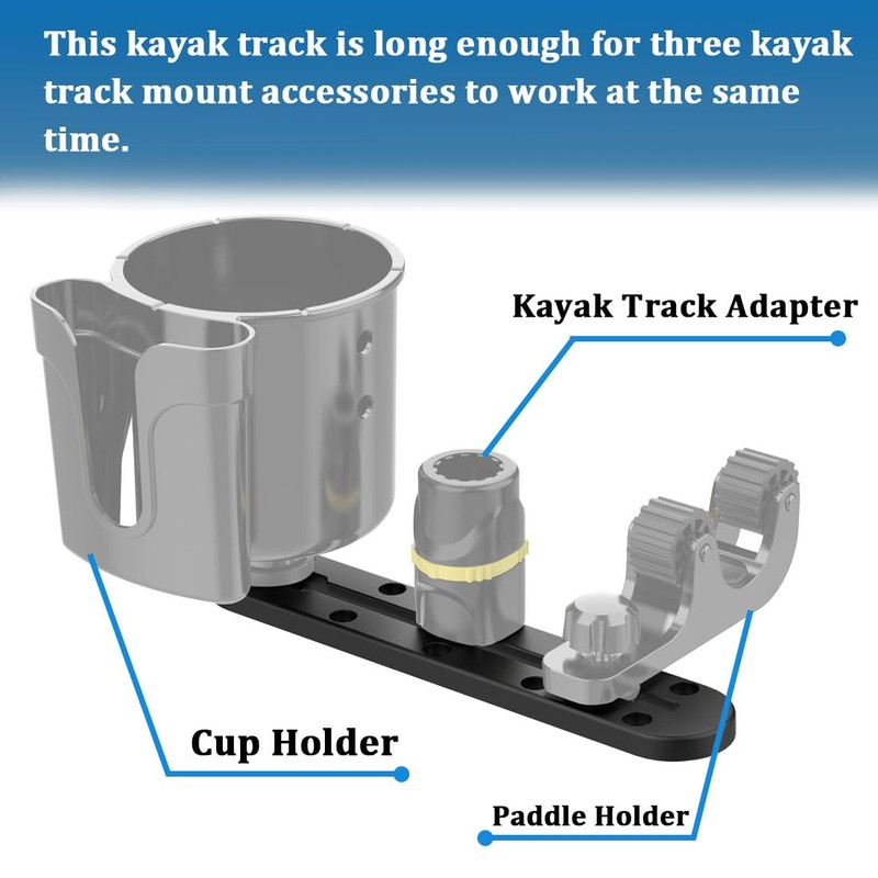- 【LONG KAYAK TRACK FOR MORE ROOM】7.8 inch of kayak track allow you to have more room to install the kayak track accessories, kayak can even install a cup holder, fishing rod holder, and kayak paddle holder on the kayak rail at the same time. Especially when you fishing on kayak, you will need many kayak accessories to help fishing.