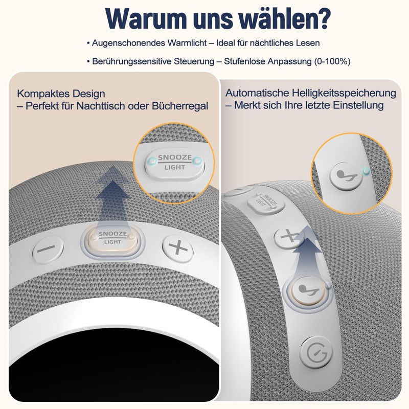 • Night light function: integrated, soft night light ideal for bedroom or children's room