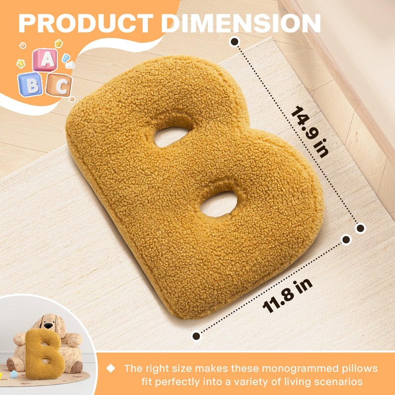 - LETTER THROW PILLOW: This decorative letter pillow cushion is selected premium materials with exquist craftsmanship, great choice as a accent pillow for nursey, kids bedroom, playroom, living room or other spaces at your home