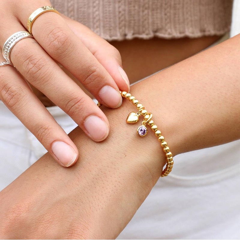 - The bracelet consists of a 18ct gold plated puffed heart charm and the crystal birthstone of your choice