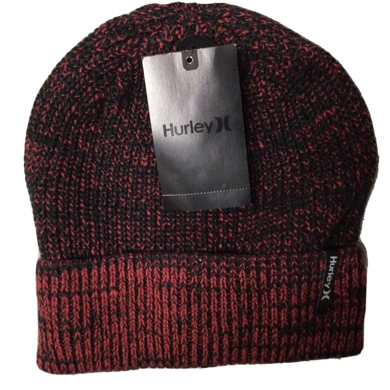 HURLEY MEN'S MAX CUFF 2.0 BEANIE BLACK/RED.