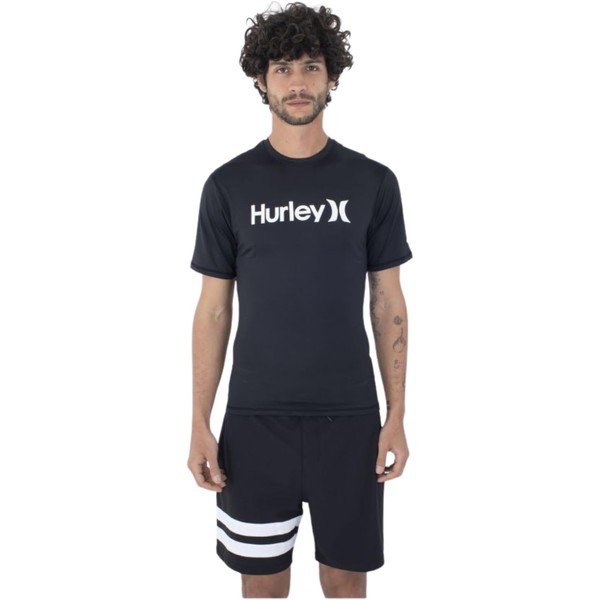 Hurley Men's OAO Quickdry Rashguard SS Rash Guard Shirt, black, S