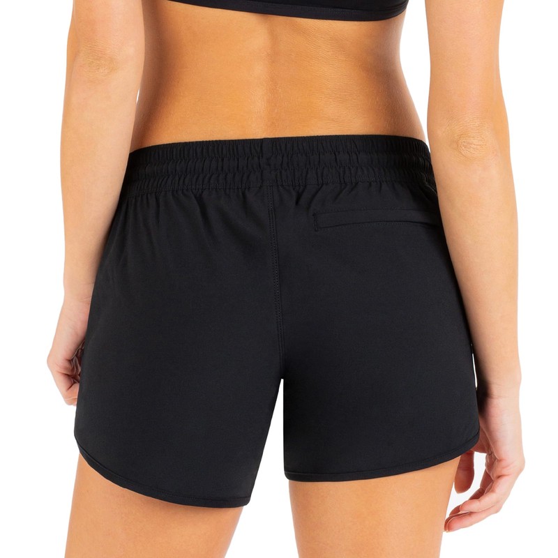 - SPORTY LOOK: The Hurley women’s board shorts feature a sporty look, a Hurley icon heat transfer, a stretch elastic waistband, a front drawcord, and a back zip pocket with a keyhole. They’re made to keep up with an active life and offer extra coverage.