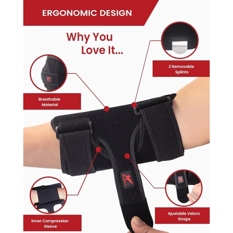 - 2 REMOVABLE METAL SPLINT: The tendonitis elbow brace with 2 removable metal splints, which helps align & straighten your elbow comfortably. Get a painless night's sleep. When the metal splints are removed, the elbow brace can also be used as another mode of protective brace to prevent injury in everyday life and sports.