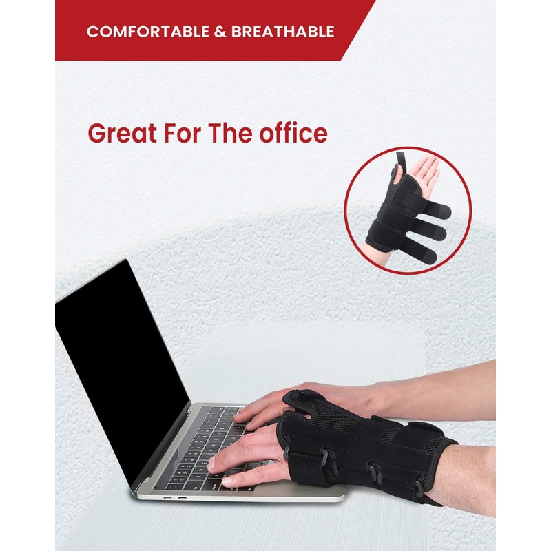 - 1 PALM-SPOON-SHAPED WRIST SPLINT: The Carpal Tunnel Brace incorporates a novel palm-spoon-shaped aluminum alloy wrist support, providing consistent support to stabilize the wrist joint effectively. Swift alleviation for wrist discomfort. Safeguard and stabilize your sprained or fractured wrist or thumb with this adjustable brace. Engineered with adjustable splints to provide stability to both your wrist and CMC thumb joint simultaneously. This brace is ideal for addressing scaphoid fractures, trigger thumb, De Quervain's tenosynovitis, carpal tunnel syndrome and wrist sprains.