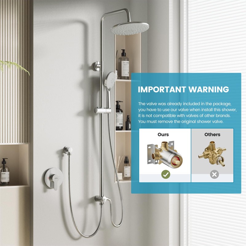 - Important Note: If you only want to replace the shower trim, this shower trim kit is not suitable for you. Our shower trim kits are not compatible with valves and valve cores from other brands. The old valve body must be removed before installation (you will need to remove tiles or remodel the pipes behind the wall).