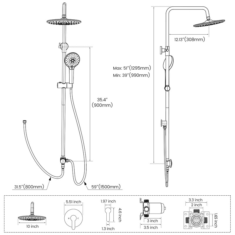 - Adjustable Shower Height: This shower fixtures kit features an adjustable slide bar design for both the overhead shower and handheld shower. You can easily slide up and down the slide bar. The shower height can be easily adjusted to suit children and adults, providing the perfect shower experience for every family member.