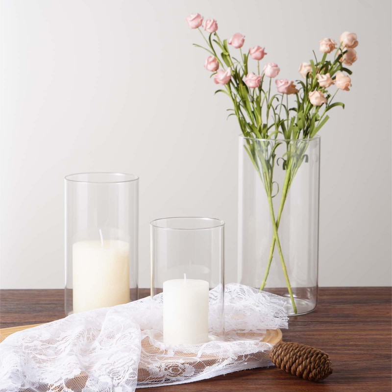 - 【Functionality】Whether you're using them as hurricane candle holders to protect flames from drafts or as clear vases to display your favorite flowers, these versatile cylinder vases serve multiple purposes. They're equally suited for holding floating candles, creating captivating tablescapes.