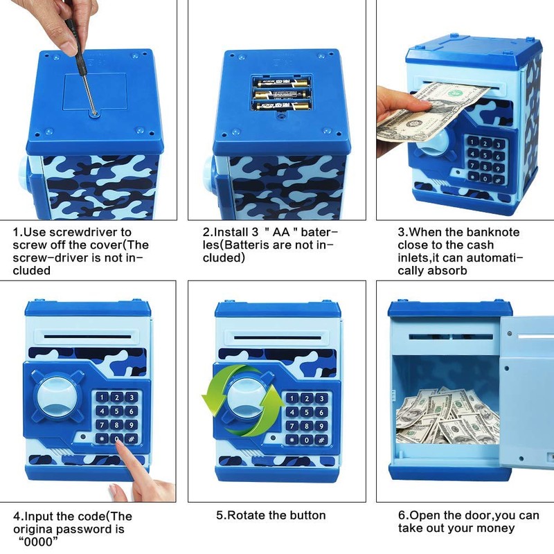 - ❤【Smart Money Saving Safe Bank】Default Code for the unique four digital password lock piggy bank is "0000" ,Password Can be changed and kids will own their money box to save money.This dollar bill bank is easy to install and set the password,good to give children a positive way to learn the virtues of saving and develop a good habit of saving money. (If you press the wrong password, just take out the batteries for 30 minutes, the password will changed back to "0000")