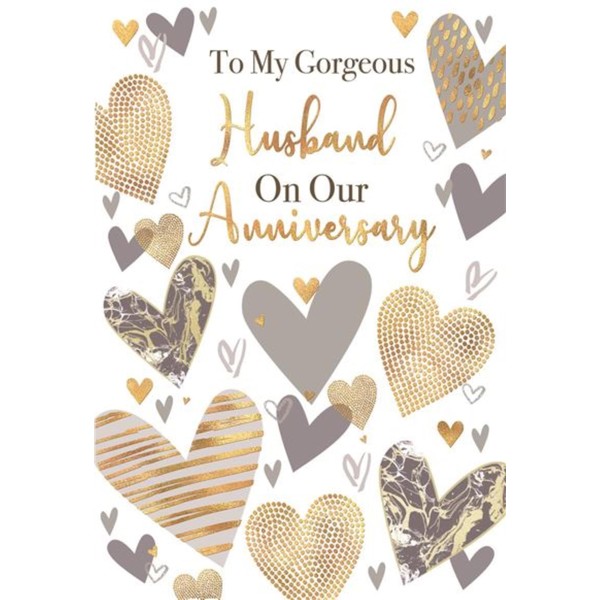 - Husband Wedding Anniversary Card With Envelope - Silver and Gold Hearts with Gold Foil