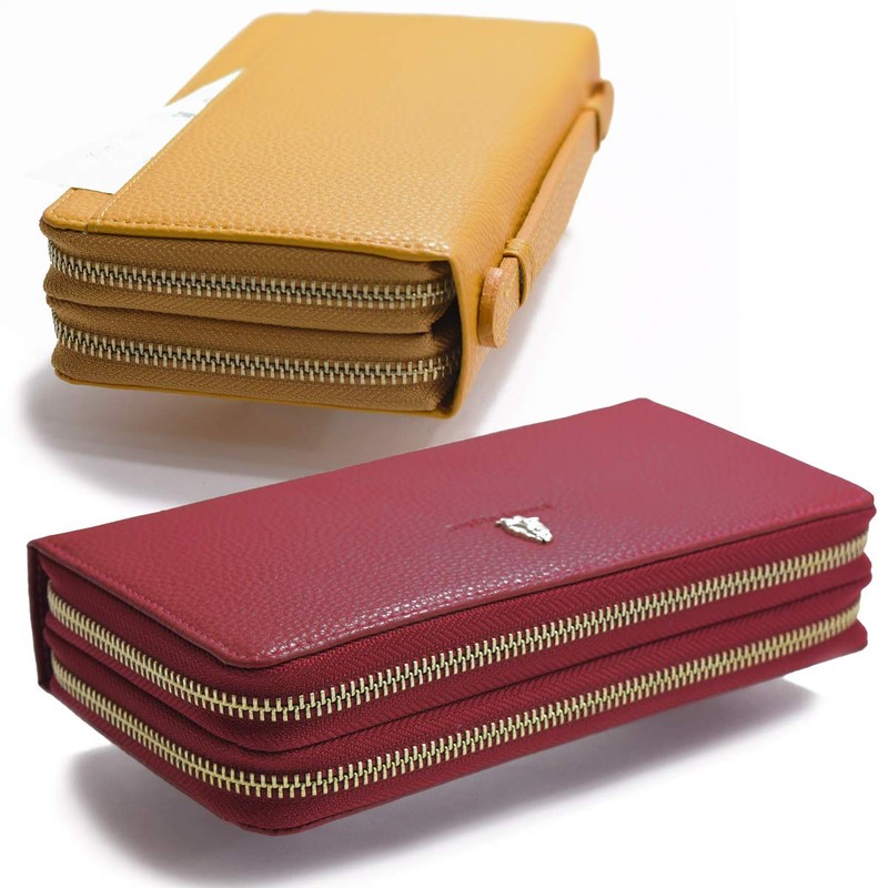 Hush Puppy HP1081 0W-HP1081 Long Wallet, Round, 6 Colors, Double Zipper, With Handle, Cowhide Leather (52)), yellow (52)