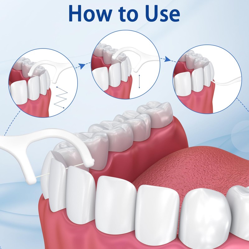 The tooth flosser picks come in a crisp white color, bringing a fresh, clean aesthetic that aligns with their purpose. Besides the practical functionality, the flossers' appealing look adds a professional touch, enhancing the oral hygiene experience.