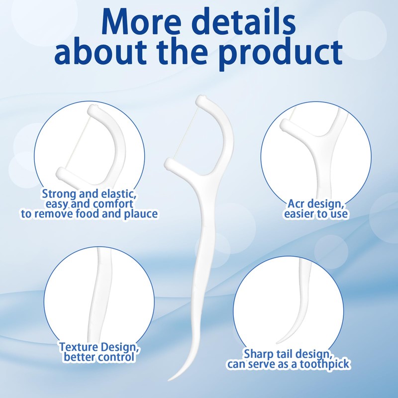 The dental floss sticks are not only suited for personal use, but also have wide applications in dental clinics, hotels, restaurant and other businesses where oral hygiene is paramount. This makes them a versatile option for various settings and requirements.